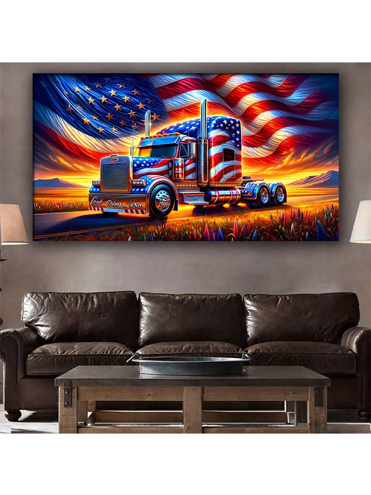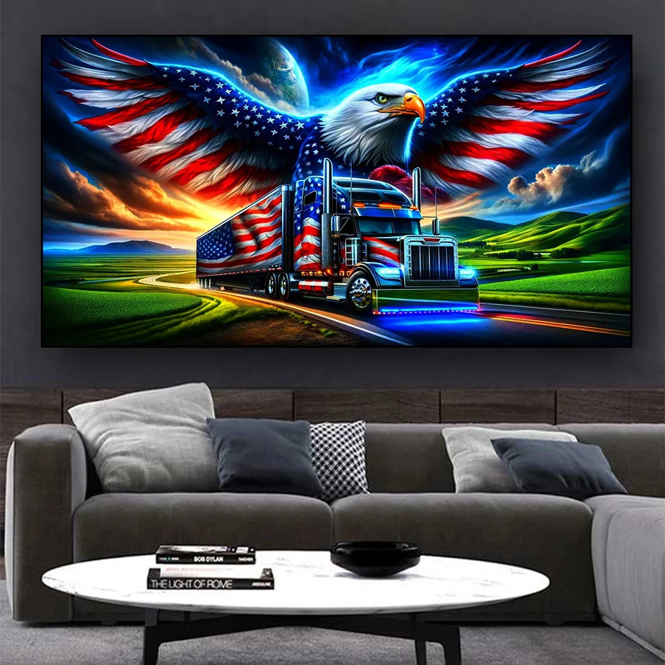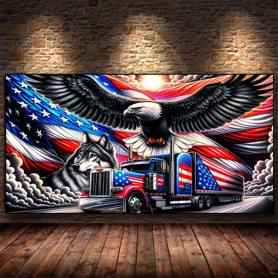 Amazing Art Diy Diamond Painting Black And White American Eagle Flag Truck Wolf Cross Stitch Kits Full Drill Mosaic Embroidery for Trucker
